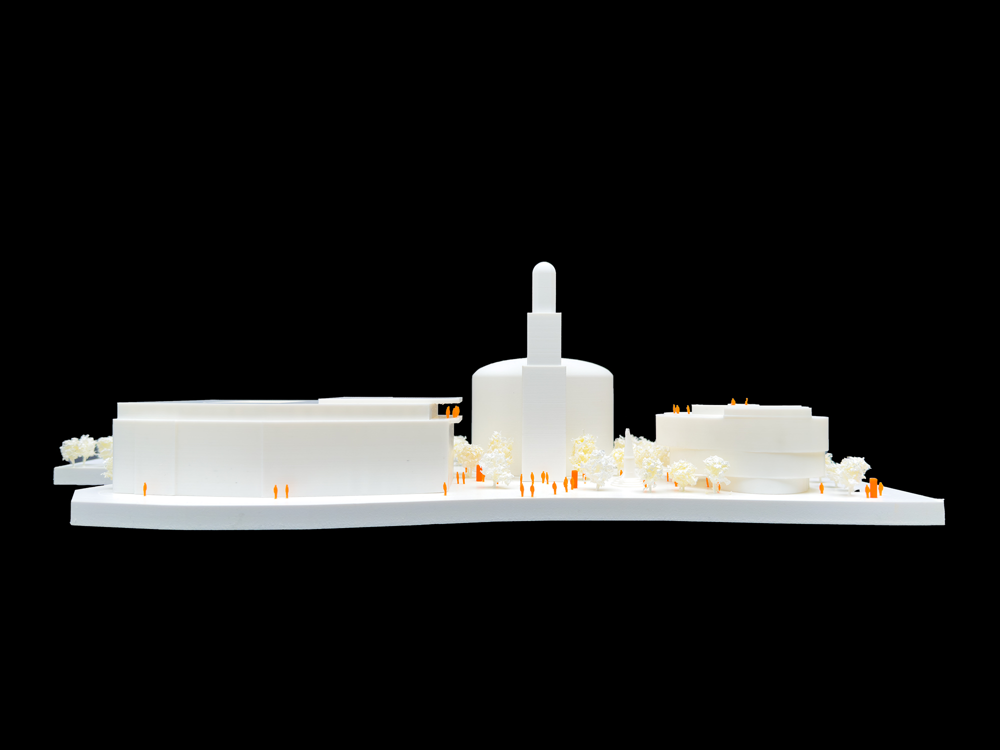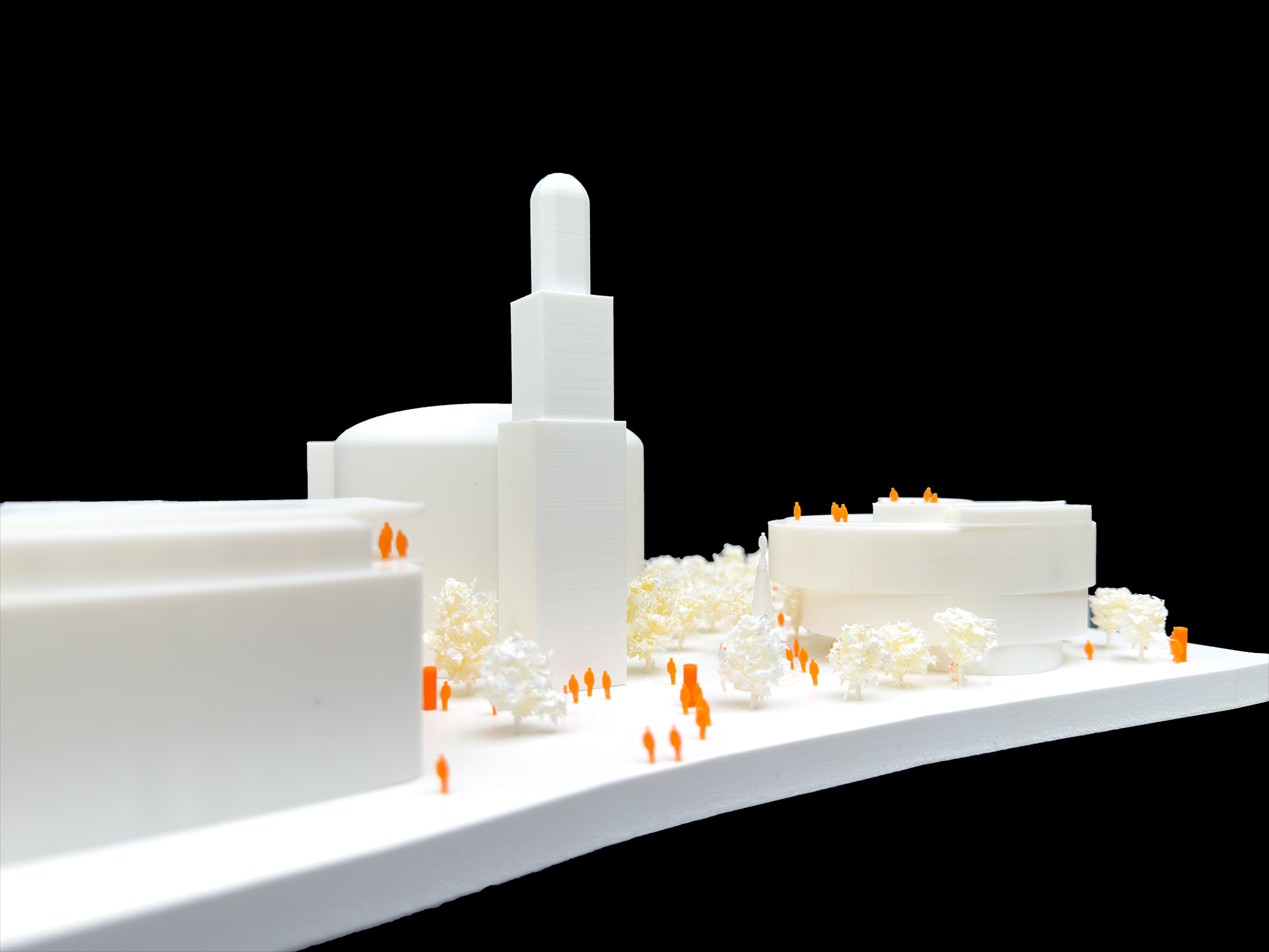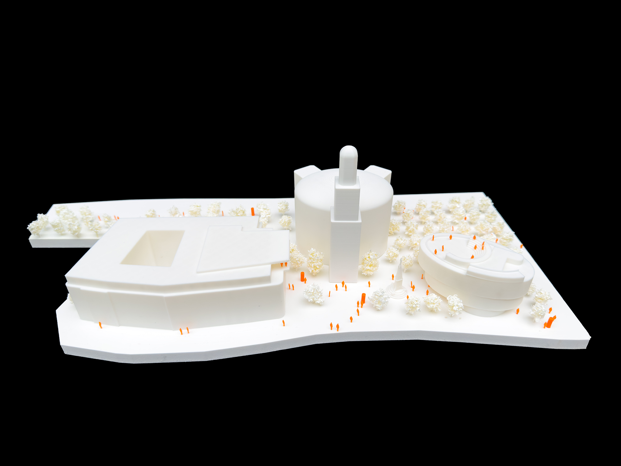 Die Architekturen werden nun über die grünen Bausteine unter Einbindung des bestehenden Baumdaches ganz wesentlich ergänzt und auch erweitert.