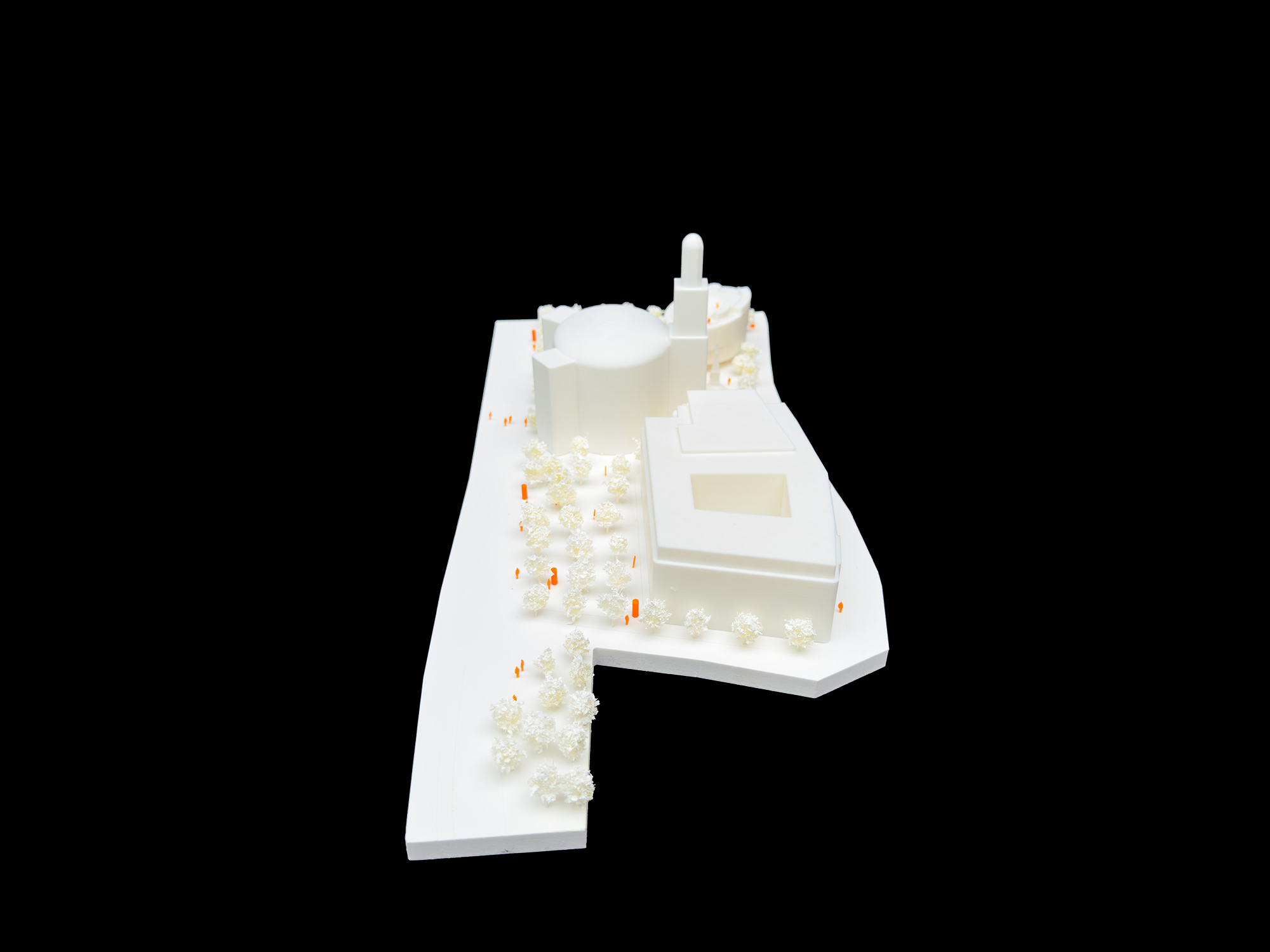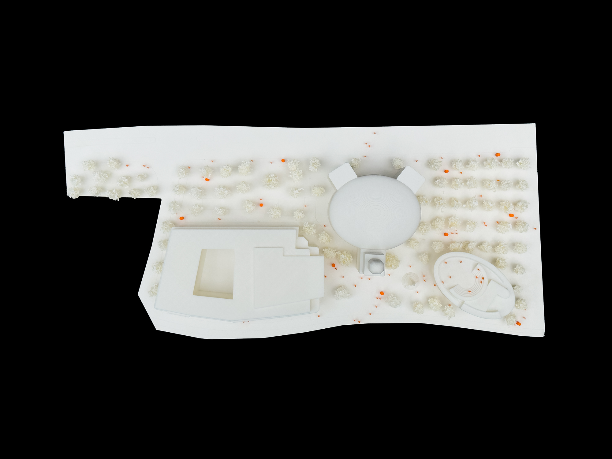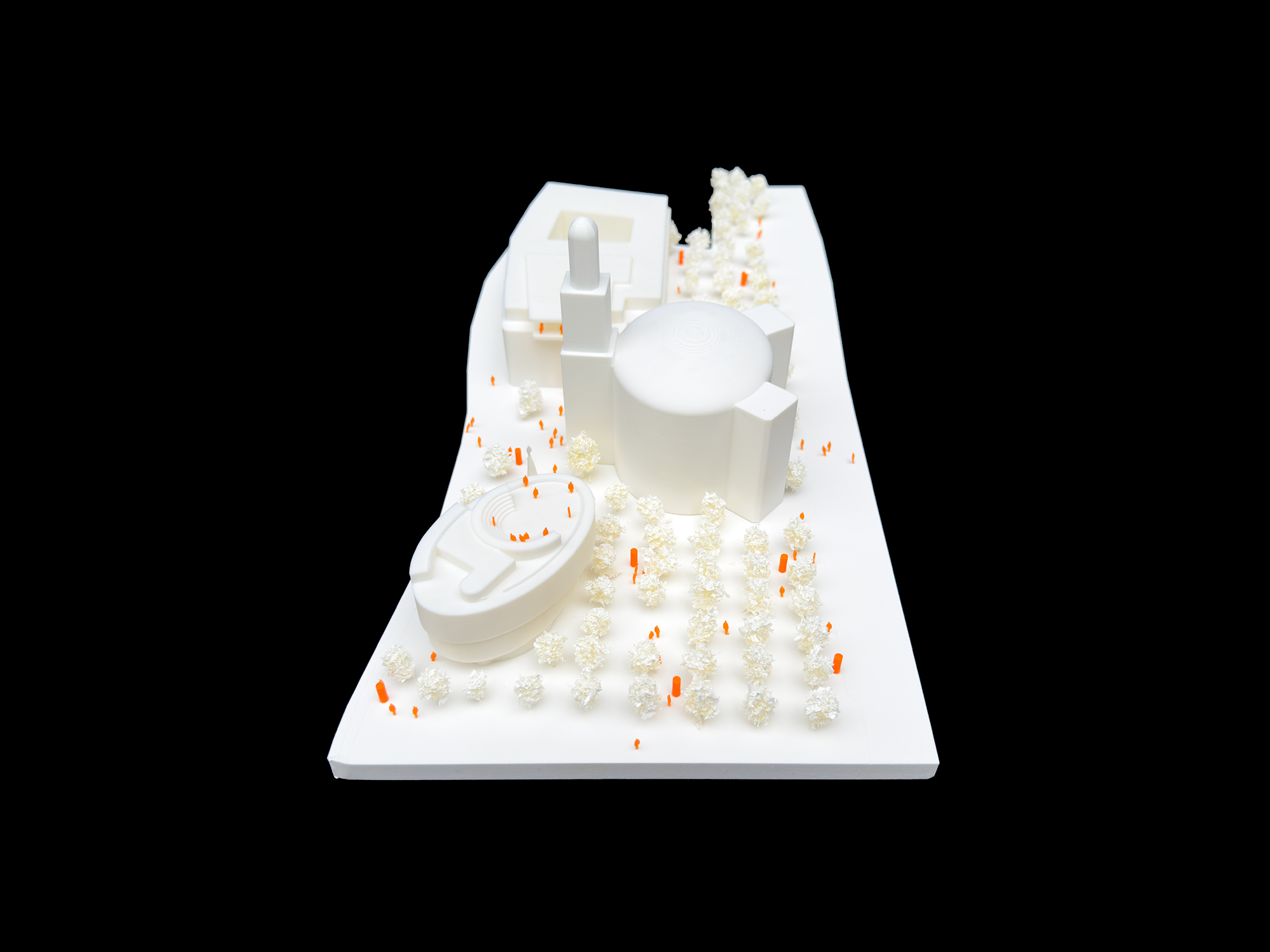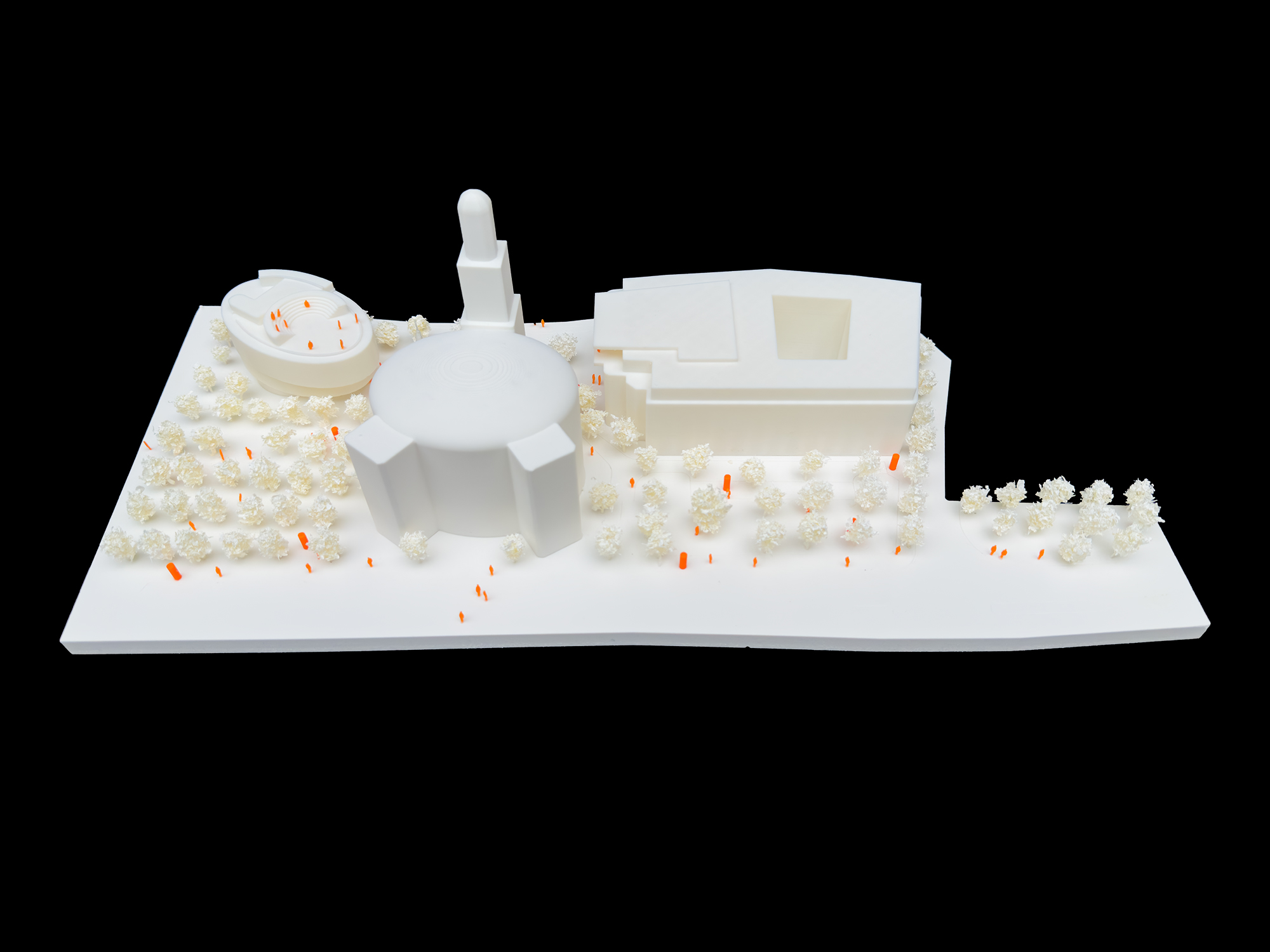 Die Architekturen werden nun über die grünen Bausteine unter Einbindung des bestehenden Baumdaches ganz wesentlich ergänzt und auch erweitert.